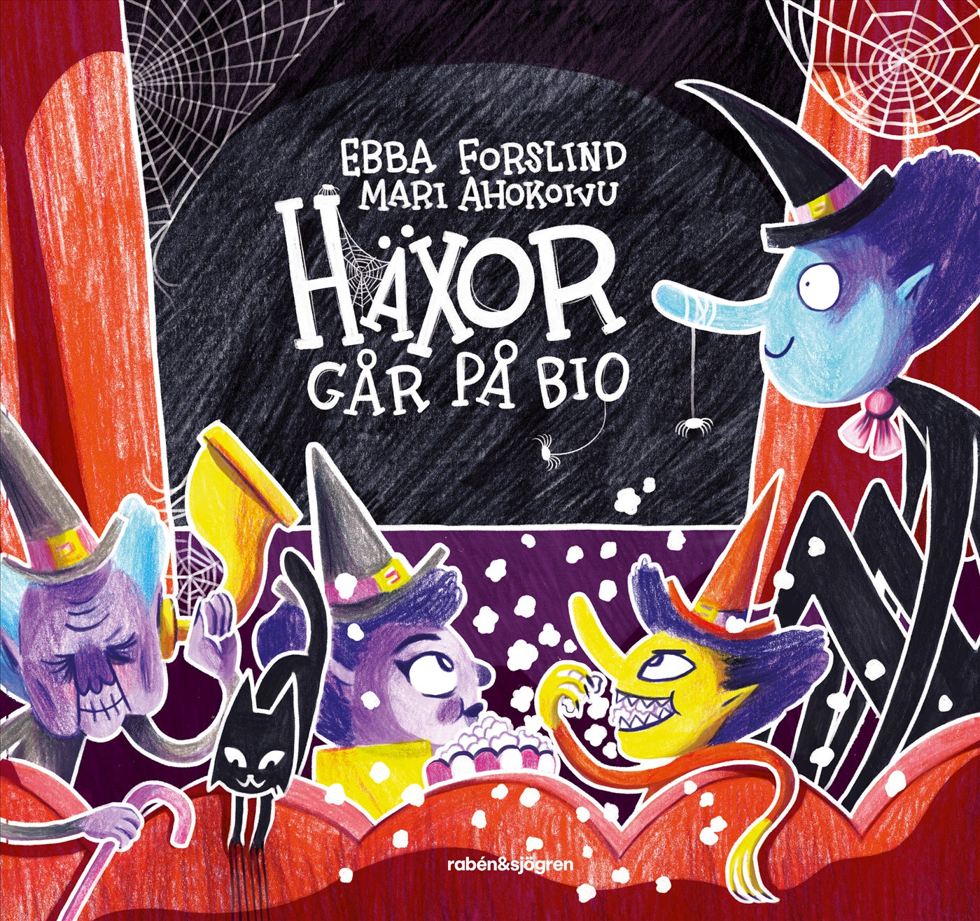 Åtta häxor och en biosalong är lika med – kaos! Häxornas kjolar korvar sig i stolarna, popcornen behöver definitivt mer salt, filmen är inte tillräckligt rolig och dessutom är det ganska kyligt i biosalongen. Lika bra att tända en liten brasa, tycker häxorna, som struntar i alla som ber dem att sluta störa. De vill ju ha kul!