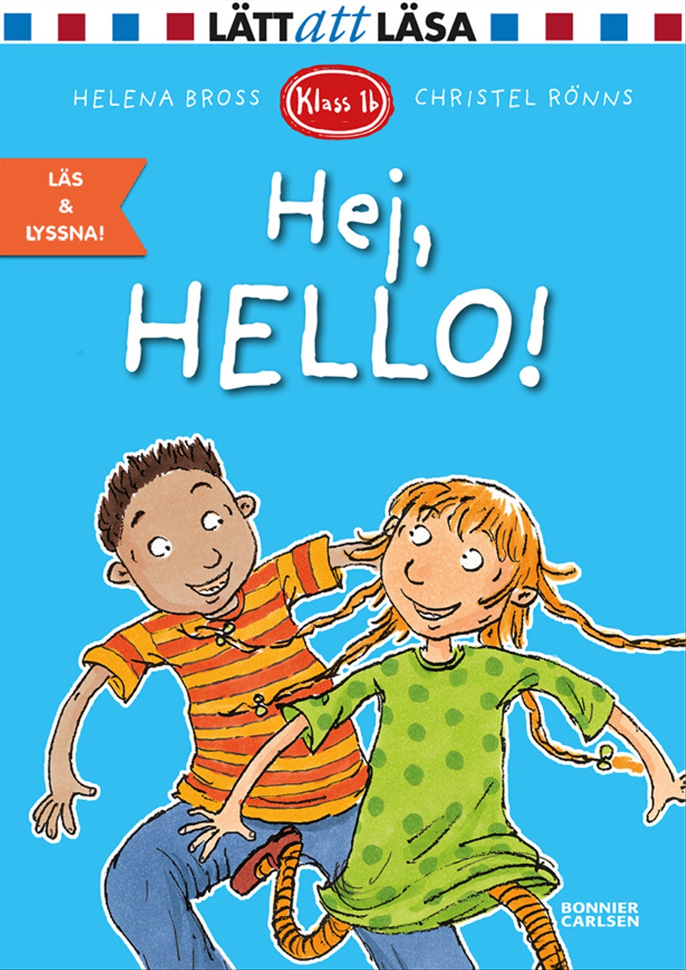 Helena Bross lättlästa böcker om barnen i "Klass 1b" toppar ständigt försäljningslistorna. I förstaklassarnas egen favoritserie kan både tjejer och killar känna igen sig. Och den här gången får kompisarna i klass 1b besök ända ifrån Amerika … Siri är så glad att hon nästan kan spricka! Hennes kusiner från USA ska komma och hälsa på. Men när hon får veta att de mest pratar engelska, blir hon lite orolig. Tänk om hon inte förstår vad de säger? Vad ska hon göra då? Och vad ska hon säga när de kommer? ”Hej!” eller ”Hello”?Hej, hello! är den nittonde, helt fristående, delen i serien om barnen i "Klass 1b". Läs också: Spöket i skolan, Starkast i klassen, Hemliga kompisar, Världens finaste glasögon, Ny i klassen, Tandligan, Vilse i skogen, Vi vill ha disco, Skrik och bajs, Ring 112!, Hjälp, vi kommer för sent!, Natt i skolan, Bli sams, Vilken vikarie!, Småkrypsjakten, Slagsmål, Allra bästa kompisen och Inbrott i skolan.