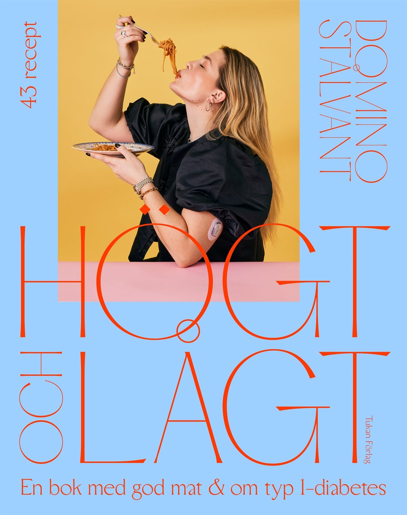 Det här är boken som Domino själv önskar att hon fick i sina händer när hon, från ingenstans och tidigt i livet, diagnostiserades med typ 1-diabetes. Högt och lågt är boken för dig som lever med typ 1-diabetes på olika sätt, för dig som vill känna samhörighet, för dig som vill lära dig mer om sjukdomen, eller för dig som vill åt varierade, enkla och goda recept. Här har du nämligen lite av allt och något för alla diabetiker som icke-diabetiker med ett fyrtiotal recept. I boken finner du flera olika kapitel som rör Dominos typ 1-diagnos, bland annat Diabetes och acceptans , Träning och diabetes och "Sjukdomsförlopp . Varje kapitel är omsorgsfullt skrivet och präglas av tankar, känslor och konkreta tips. Det handlar om att man ska kunna leva ett gott liv i flera bemärkelser. Både när det gäller mat, träning och resande, trots en sjukdom som kan sätta käppar i hjulet. Bland de 45 recepten finner vi Dominos egna favoriter i kategorierna frukost, snacks vid låga blodsockervärden, mindre rätter, större rätter och bakning samt dessert. Här finns det rätter som tonfisktartar på friterat rispapper, citrussallad med sorbet på passionsfrukt, krispig french toast med amarettoinkokta körsbär, risotto med friterad kyckling, blodapelsin- och vallmokaka och hennes mest uppskattade varianter på godisklassiker så som Twix, Snickers, Milky Way och Bounty. Domino Stålvant inspirerar dagligen flera hundratusen personer på sina sociala medier, bl.a. @dominostalvant, till att leva ett så vanligt och bra liv som möjligt. När hon var 23 år fick hon diabetes typ 1, men hennes stora kärlek till mat har inte försvunnit, utan snarare har det blivit ett ännu mer passionerat intresse. Domino var 14 år när hon startade instagramkontot @fashionbook som i dag har över 800 000 följare. Hon driver även @luxurybook och @femmebook.