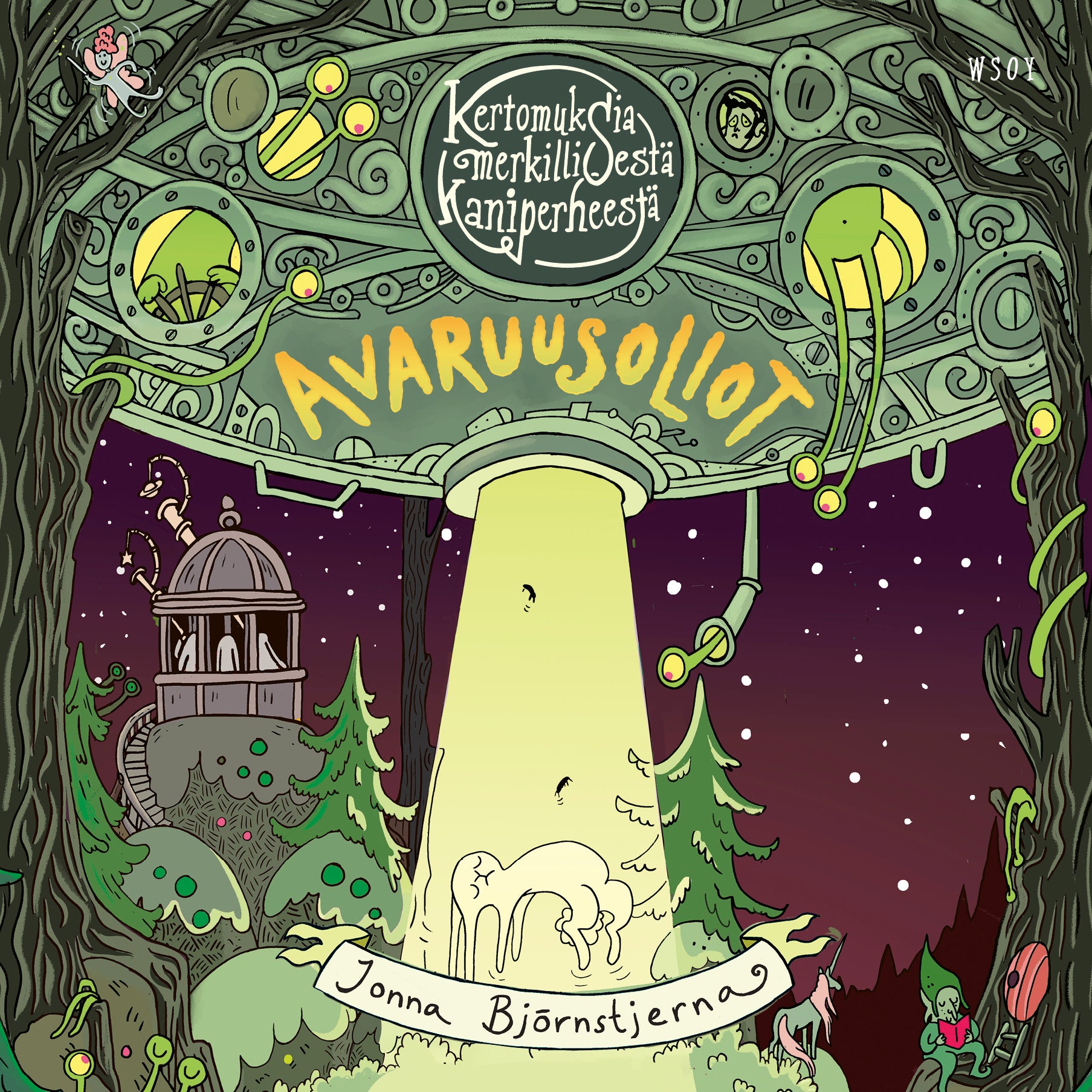 Satumetsässä on upea kirkas yö, eli loistava aika mennä ihastelemaan tähtiä. Mutta mikä loistaa taivaalla kuutakin kirkkaammin? Jokin uusi ja outo laskeutuu Satumetsän ylle... Uusi kertomus merkillisestä kaniperheestä onnistuu yhtä aikaa jännittämään, ihastuttamaan ja naurattamaan!