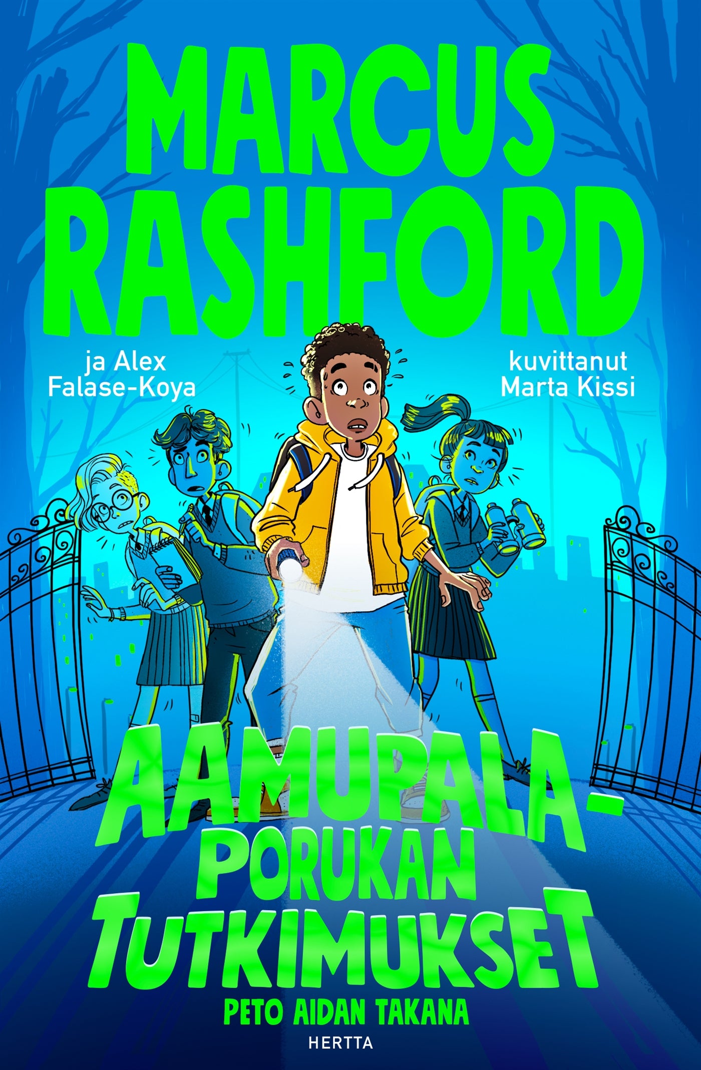 Marcus Rashford on englantilainen ammattilaisjalkapalloilija, joka on saanut MBE-arvonimen hyväntekeväisyystyöstään vähävaraisten brittilasten hyväksi. Sarjan kirjoittamiseen häntä innoittivat omat kouluaikaiset kokemuksensa. Toisena kirjoittajana sarjassa on lastenkirjailija Alex Falase-Koya, ja hauskat kuvitukset on tehnyt Marta Kissi.