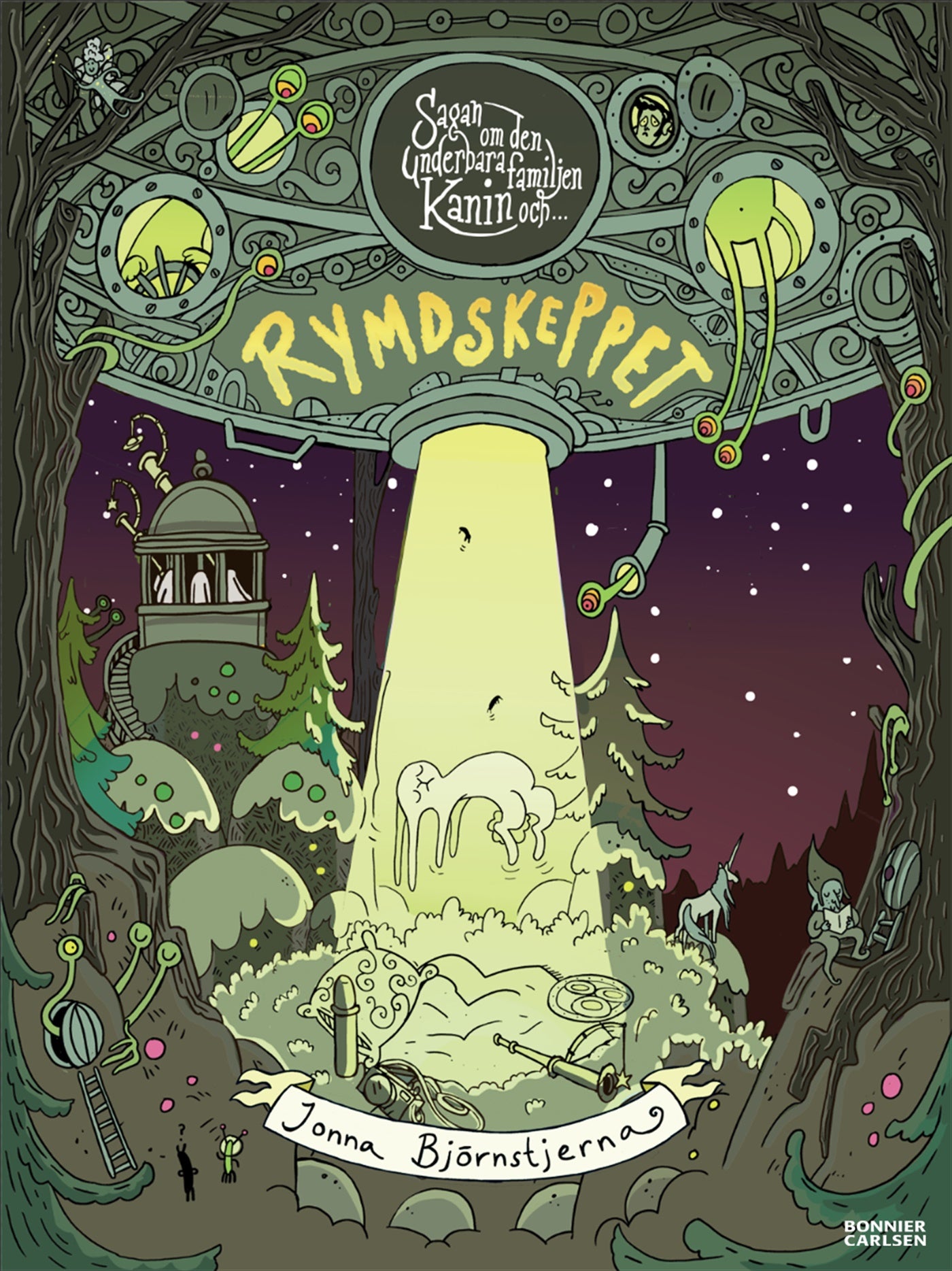 En hejdlöst knasig och lite småläskig berättelse om rymdvarelser som vill erövra Sagoskogen. Här krävs en modig liten kanin med rätt utrustning!
