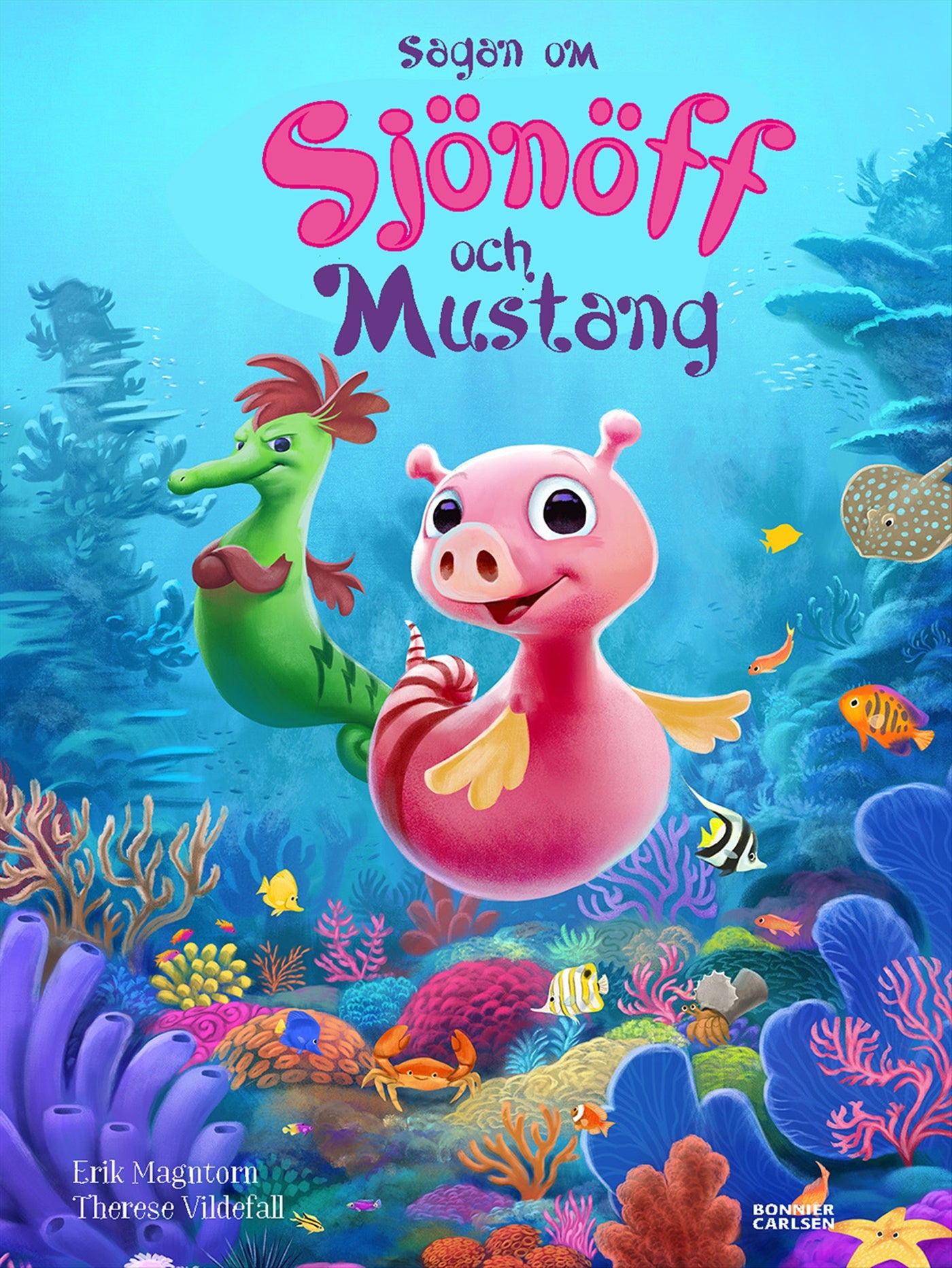 Erik Magntorns och Therese Vildefalls fantasifulla undervattenssaga tar med läsaren på ett äventyr bland rullande vågor, saltstänkta stränder och dansande sjöhästar.
