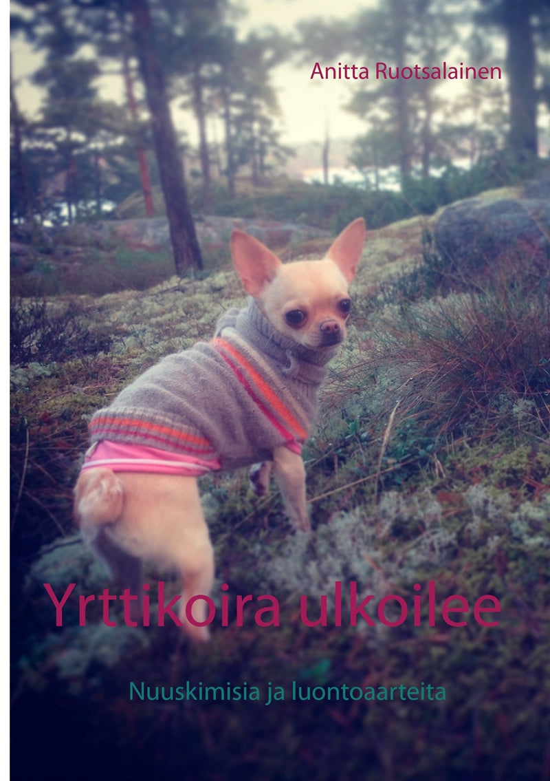 Yrttikoira opastaa lenkkipolun ulkopuolelle etsimään luonnosta löytyviä yrttiherkkuja ja kokemaan yhteisiä hetkiä koiraystävän ja perheenjäsenten kanssa. Yrttikoira ulkoilee on myös muistiinpanokirja, johon voi merkitä omat suosikkireitit, salaiset luonto aarteiden paikat ja luontohavainnot. Kirjassa on huomioitu niin lapsen kuin aikuisenkin mahdollisuus elämykselliseen luontokokemukseen.